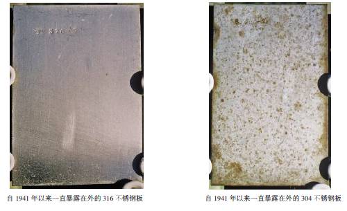 NIST曾經在多種土壤中對未采取保護措施的不銹鋼進行試驗。304和316不銹鋼在大多數土壤中都具有很高的耐點蝕和耐均勻腐蝕性能。在腐蝕性較強(如氯化物含量較高)的土壤中,304不銹鋼易發生點蝕,但316不銹鋼在包括潮汐沼澤和粘土在內的所有試驗土壤內均表現出良好的耐蝕性。316不銹鋼僅在被海水淹沒的海濱砂土土壤中發生了點蝕。